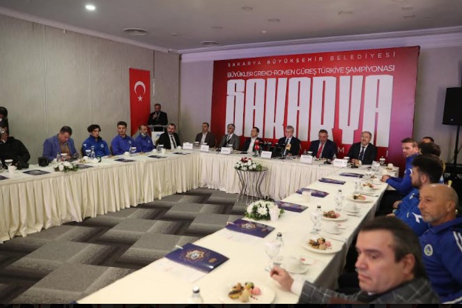 24-25-26 Aralık tarihleri arasında Büyükşehir Belediyesi ev sahipliğinde düzenlenecek Büyükler Greko-Romen Güreş Türkiye Şampiyonası’nın basın lansmanı yapıldı. Ramada Otel’de gerçekleştirilen lansman törenine Başkan Ekrem Yüce’nin yanı sıra Türkiye Güreş Federasyonu Başkanı Şeref Eroğlu ve Asbaşkanı Ahmet Taşçı, Gençlik ve Spor İl Müdürü Arif Özsoy, Büyükşehir Belediyesi Genel Sekreter Yardımcısı Bedrullah Erçin, Sakarya Büyükşehir Spor Kulübü Başkanı Cevat Ekşi, sporcular, antrenörler ve basın mensupları katıldı.