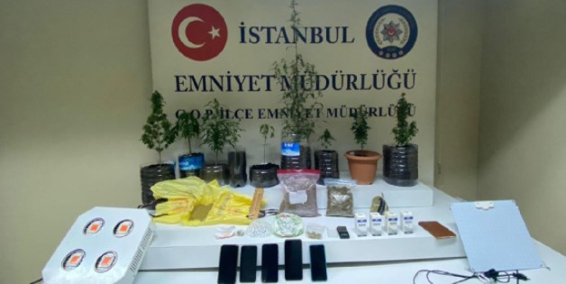 Ekiplerce düzenlenen baskında adreste bulunan A.B., U. Ö. ve M.M., isimli 3 şüpheli gözaltına alındı. Adreste yapılan aramalarda; dairenin tuvalet kısmında ışıklandırma sistemiyle yetiştirilen saksılara ekili halde 9 adet marihuana, uyuşturucu yetiştiriciliği için kullanılan 2 adet mor ışık aparatı, 464 gram marihuana, 225 gram toz kubar, 32 gram kokain, 26 gram mdma isimli uyuşturucu madde, amonyak, uyuşturucu ticaretinden elde edilen 7 bin 565 lira para, 3 bin 900 lira sahte para ve 4 adet cep telefonu ele geçirildi.